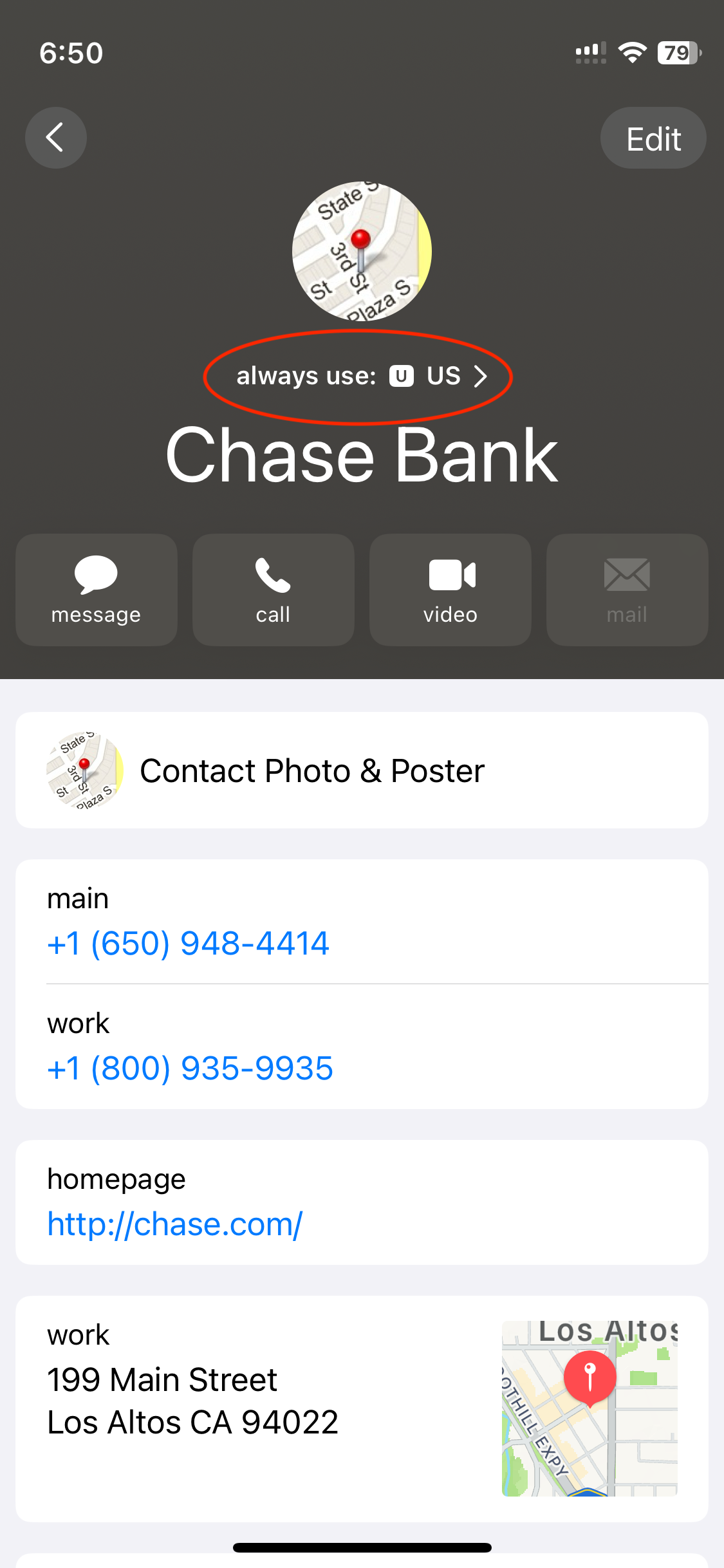 The best solution is to edit all those US numbers and include a “+1” at the beginning (the country code for the US is 1, that’s the advantage of building the first nationwide phone system and leading the design of international standards). So the number should look like this: +1 (408) 472-1609